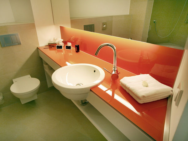 Die Bäder sind mit modernsten Materialien mit vielen Ablagemöglichkeiten und wassersparenden, umweltfreundlichen Armaturen versehen.